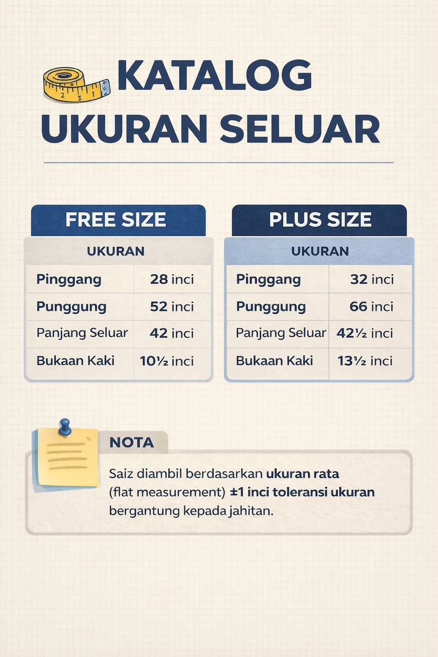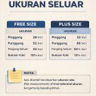nota: seluar pelikat ada 2 size, iaitu free size dan Plus Size. Untuk free size muat sehingga berat 100kg kebawah dan Plus size untuk berat 100 kg-150kg.